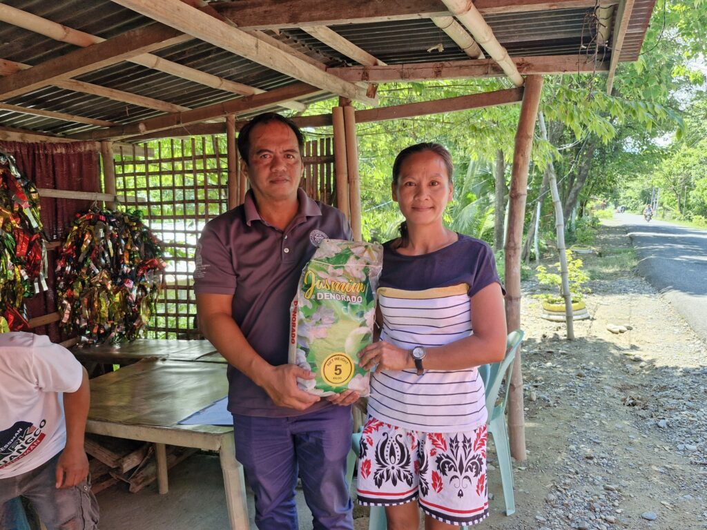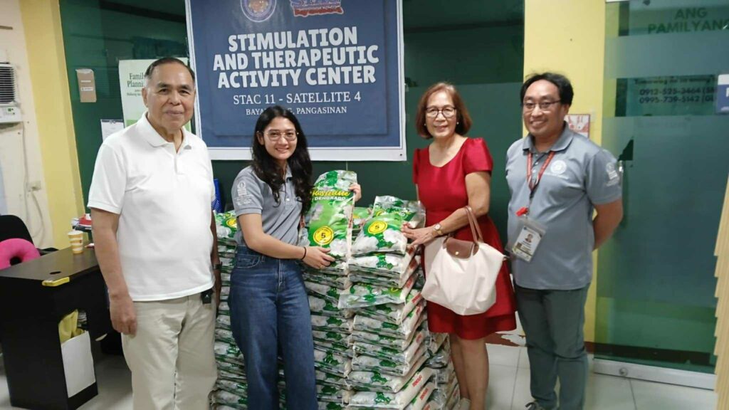 Malugod na nagpapasalamat kina Dr. Nicolas at Dr. Myrna Miguel ang LGU-Bayambang at mga magsasakang nabiyayaan ng bigas. (MAO; MAO, MSWDO)