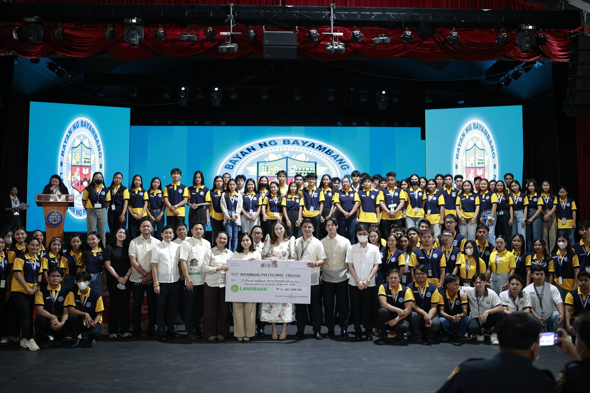 Kasabay ng pagpapakilala sa mga estudyante ay ang ceremonial awarding ng tseke na nagkakahalaga ng P15,307,600.00 — isang personal na donasyon ng First Couple ng Bayambang.