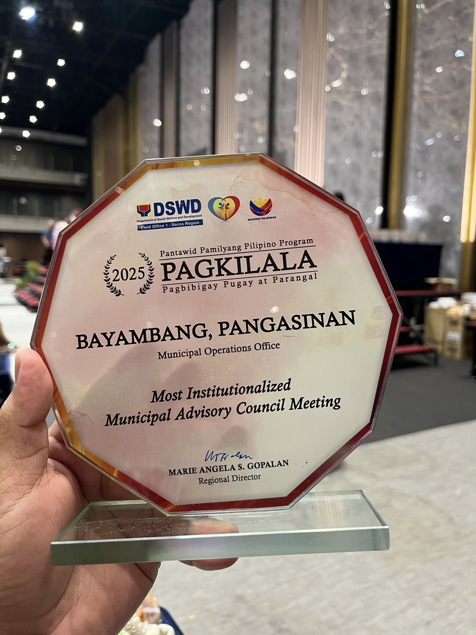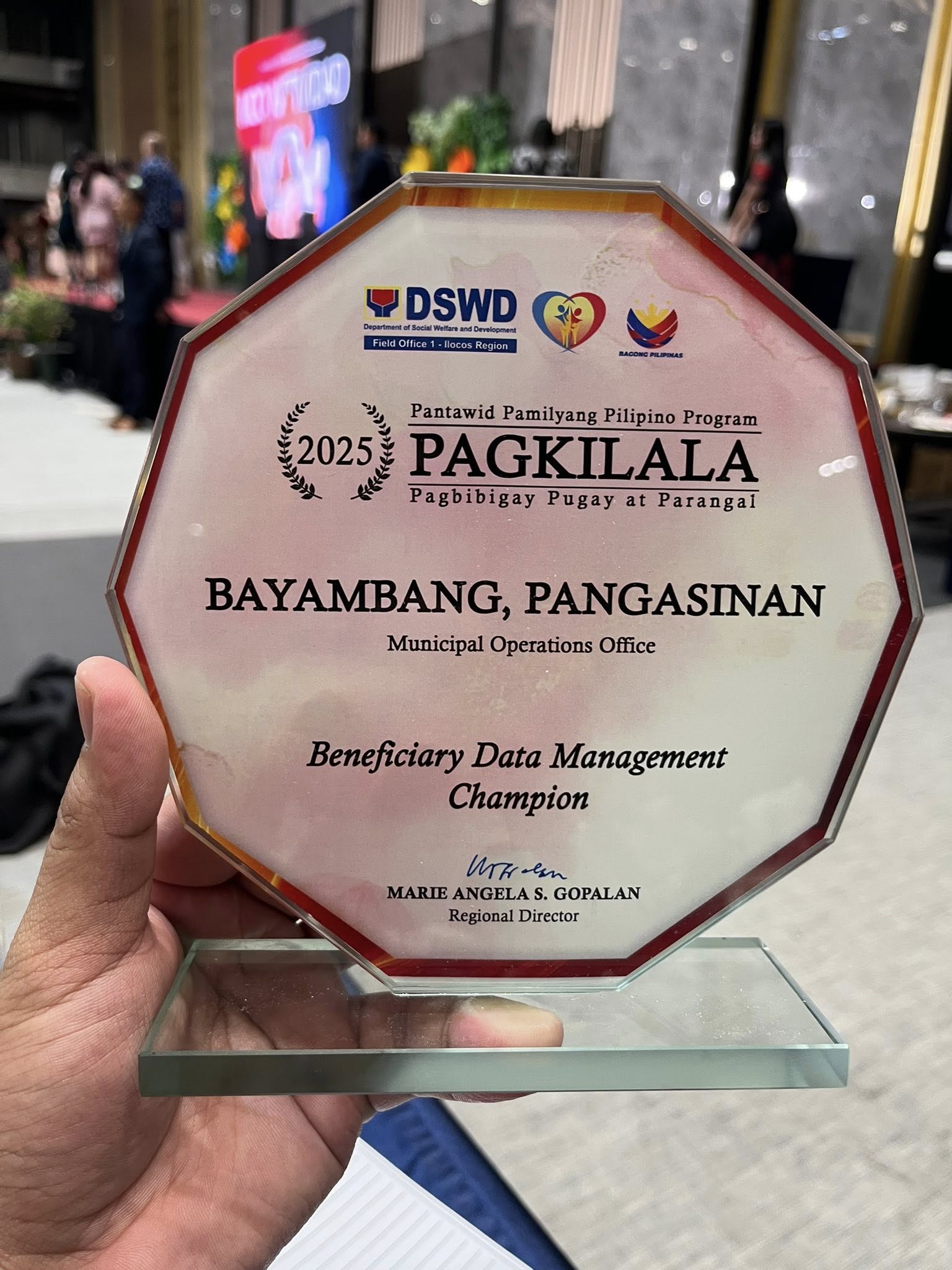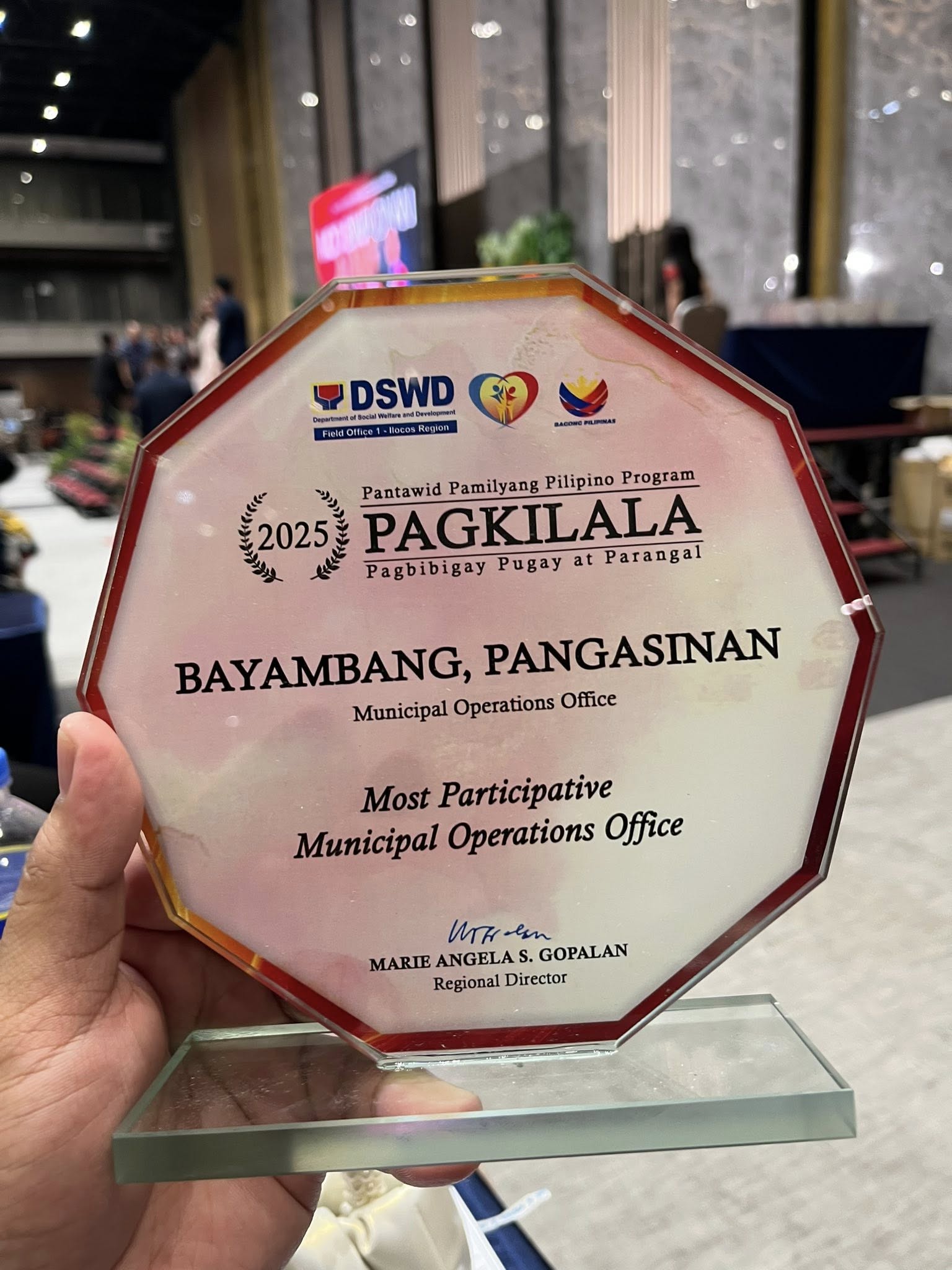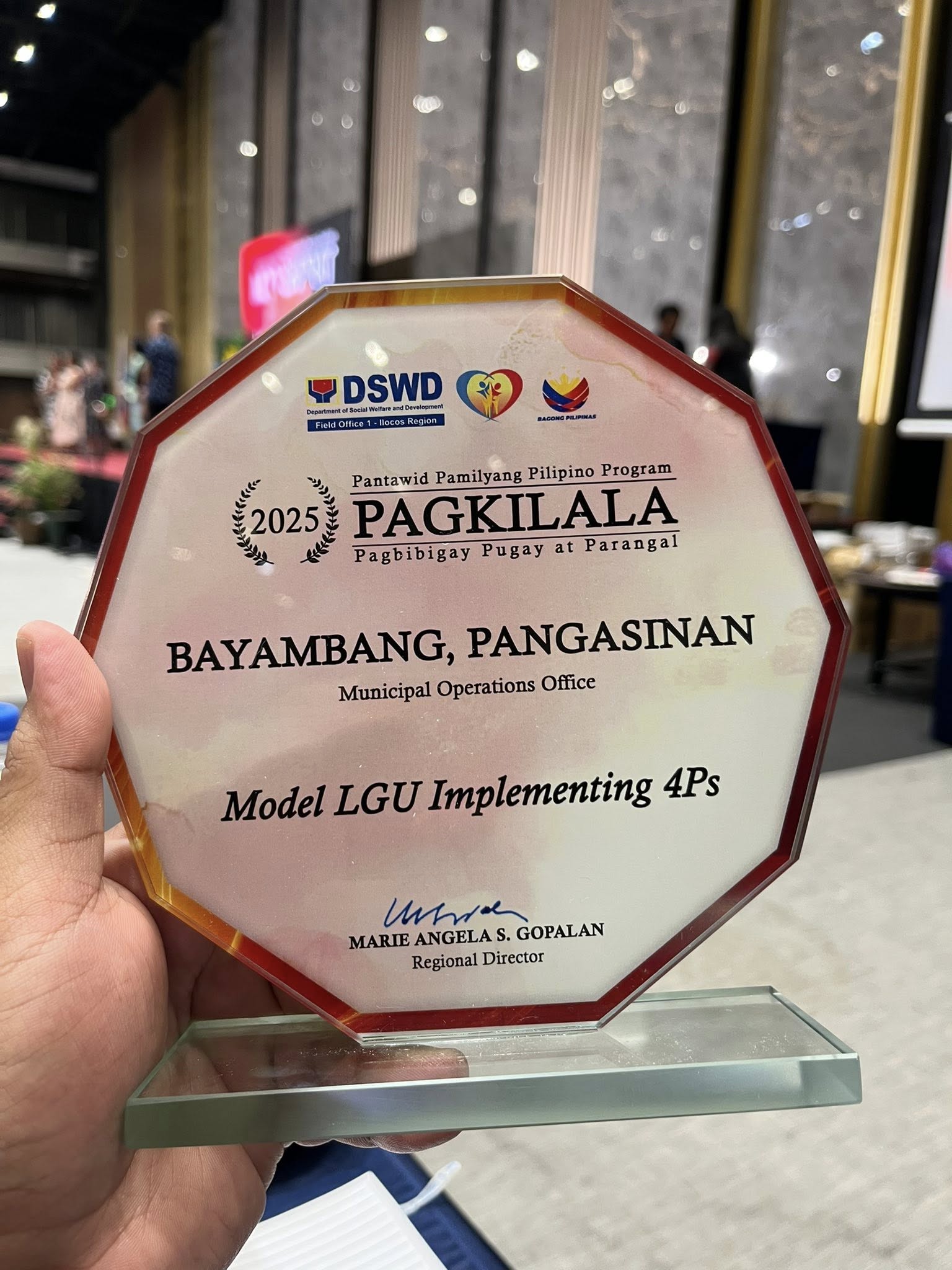 Kinilala ang natatanging serbisyo ng Department of Social Welfare and Development (DSWD)-Municipal Operations Office (MOO) ng Bayambang matapos nitong tumanggap ng sunud-sunod na parangal para sa epektibong pagpapatupad ng Pantawid Pamilyang Pilipino Program (4Ps) sa bayan ngayong taong 2025.