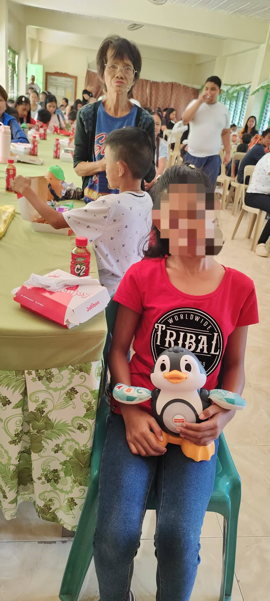 Ito ay personal na handog ng batang si Helaena Toledo Quinto ng California, USA, sa pakikipag-ugnayan kina BCS Principal Lamberto de Vera at Persons with Disability Affairs Officer Johnson R. Abalos. (RSO; Feeding Angels of Bayambang)