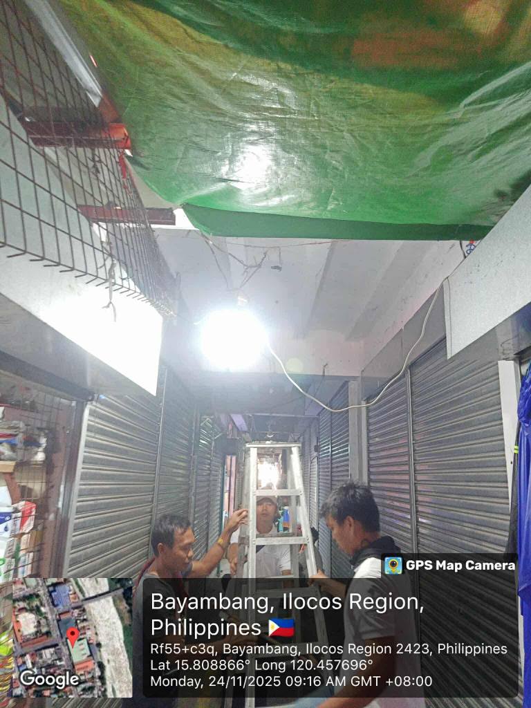 Patuloy na isinasagawa ng SEE Staff ng LGU Bayambang ang pag-aalis ng mga illegal na wiring sa Pamilihang Bayan upang matiyak ang kaligtasan at kaayusan sa paligid ng palengke.