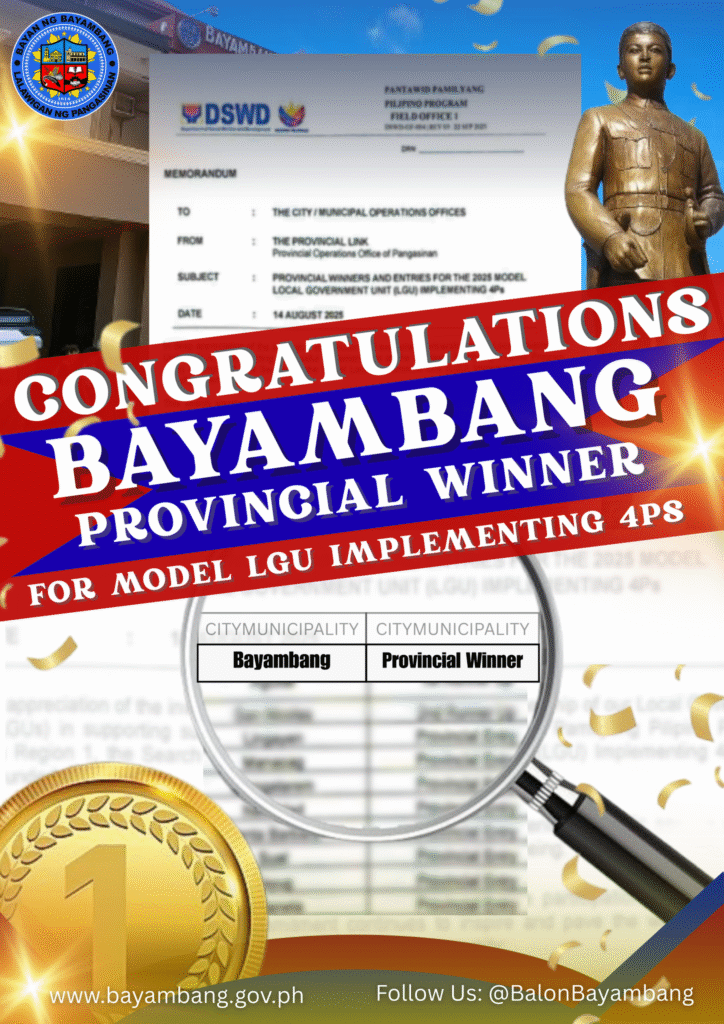 Muling nasungkit ng LGU-Bayambang ang titulong Model LGU Implementing 4Ps sa buong probinsiya ng Pangasinan!