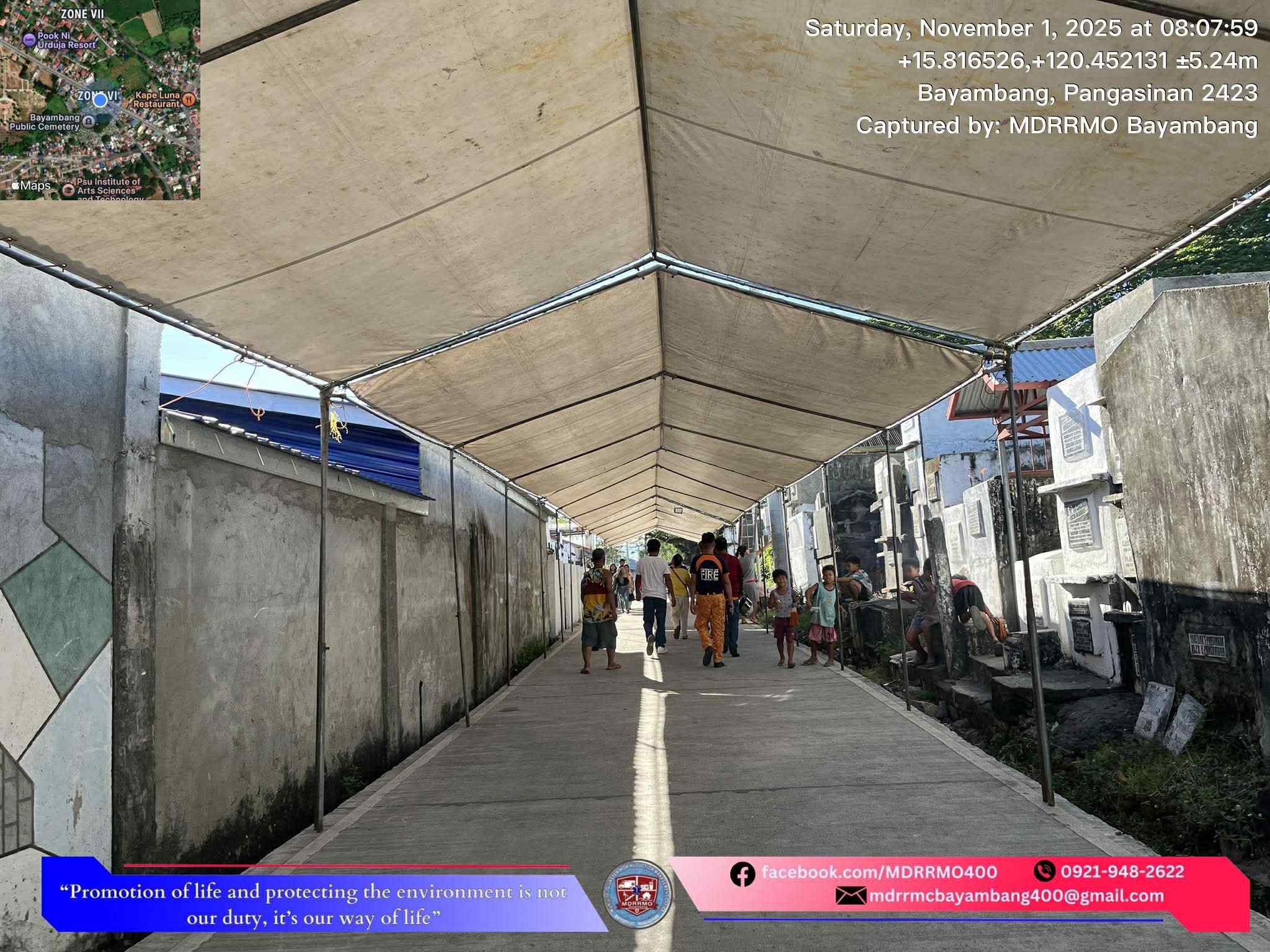 Bilang karagdagang serbisyo para sa mga mamamayang bumibisita sa kanilang mga yumaong mahal sa buhay, naghandog si Mayor Niña Jose-Quiambao ng mga libreng portable shades o canopies sa mga sementeryo ng Bayambang ngayong Undas 2025, dahil sa kagustuhan nitong maprotektahan ang mga bisita laban sa init ng araw at posibleng pag-ulan, habang maayos nilang inaalala ang kanilang mga mahal sa buhay.