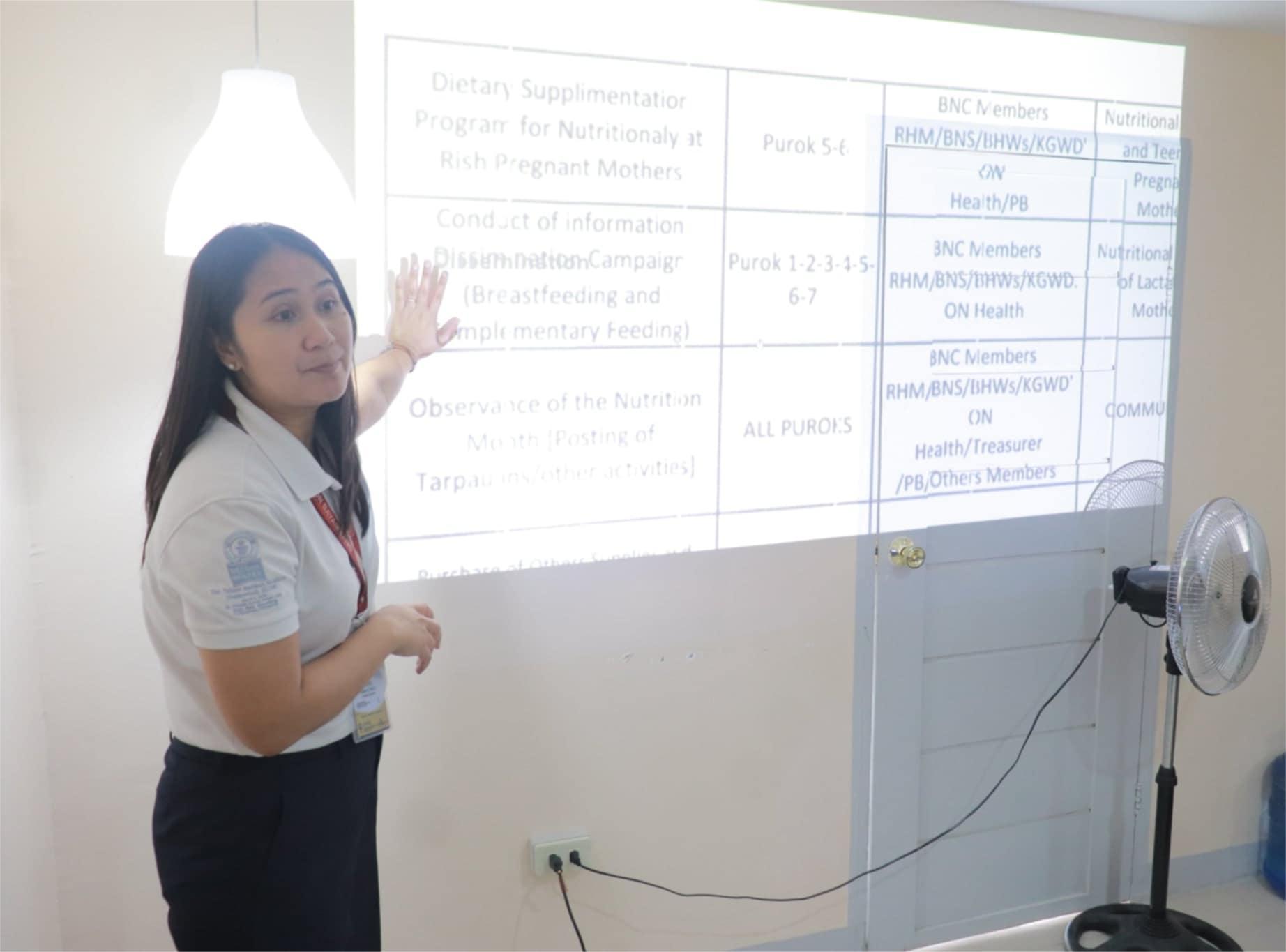 Nanguna naman si Municipal Nutritionist Venus M. Bueno at kanyang staff upang ibahagi ang kanilang mga gawain kabilang na ang mga paraan ng pagmonitor sa timbang at taas ng mga bata, pagpapaunlad ng mga community garden, at mga programa para sa pagpapalakas ng nutrisyon ng mga ina.