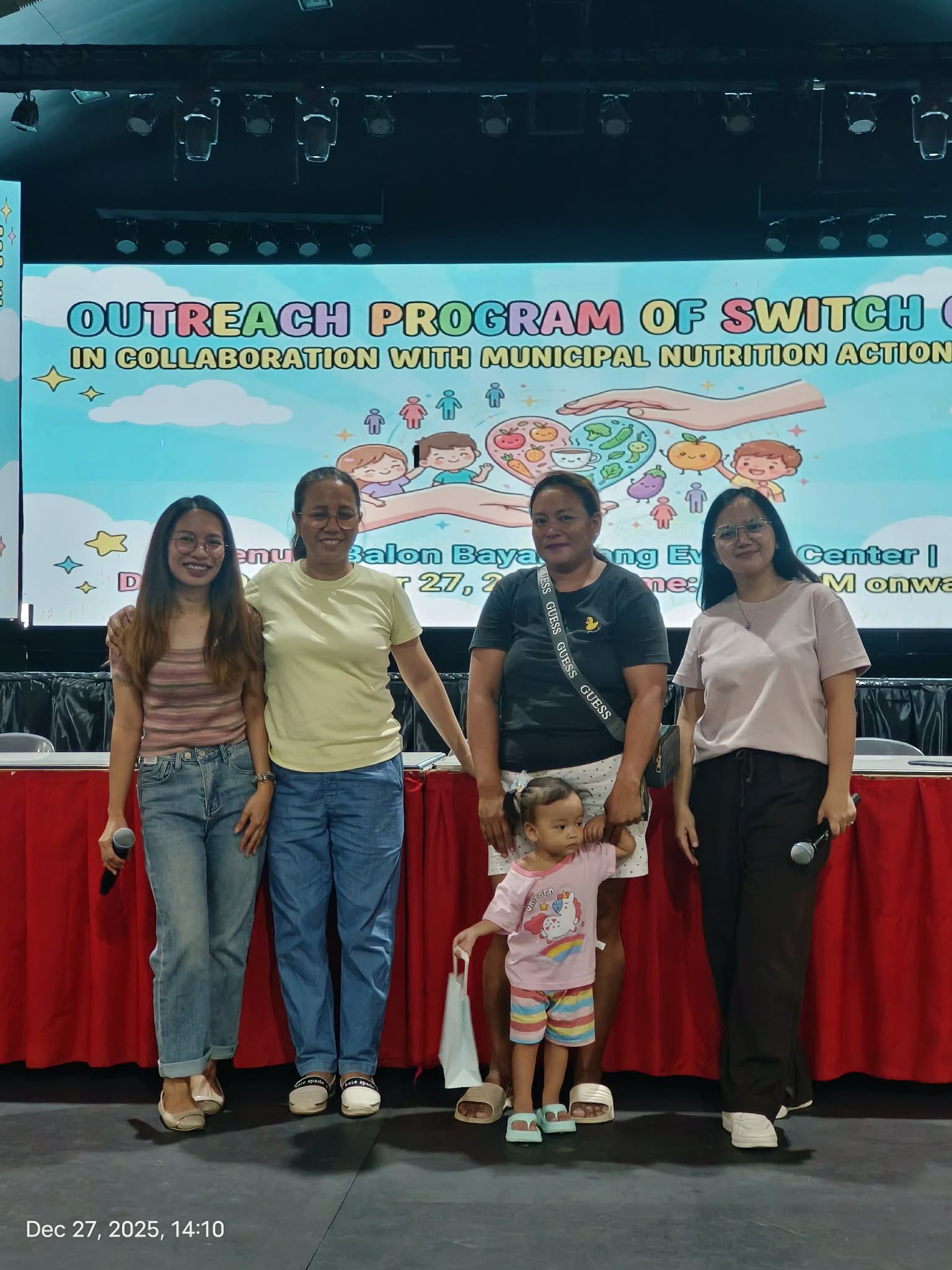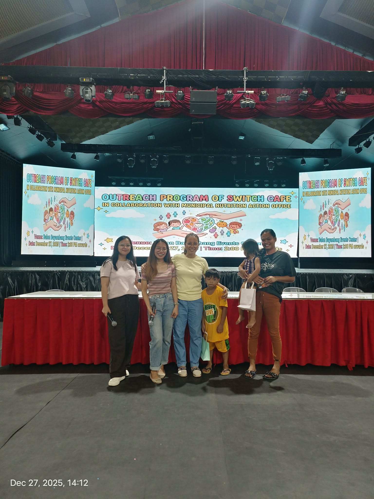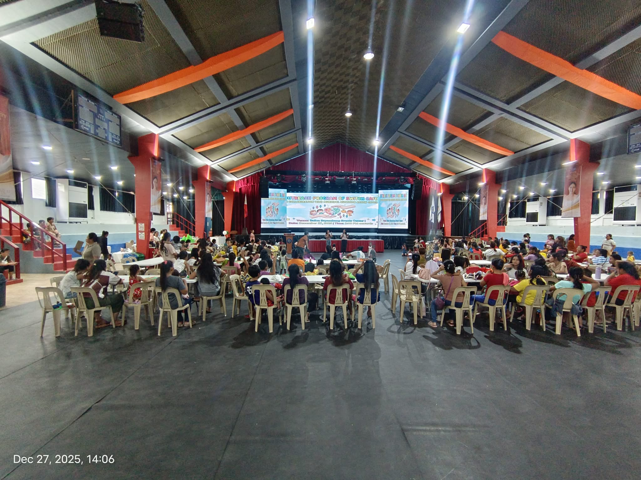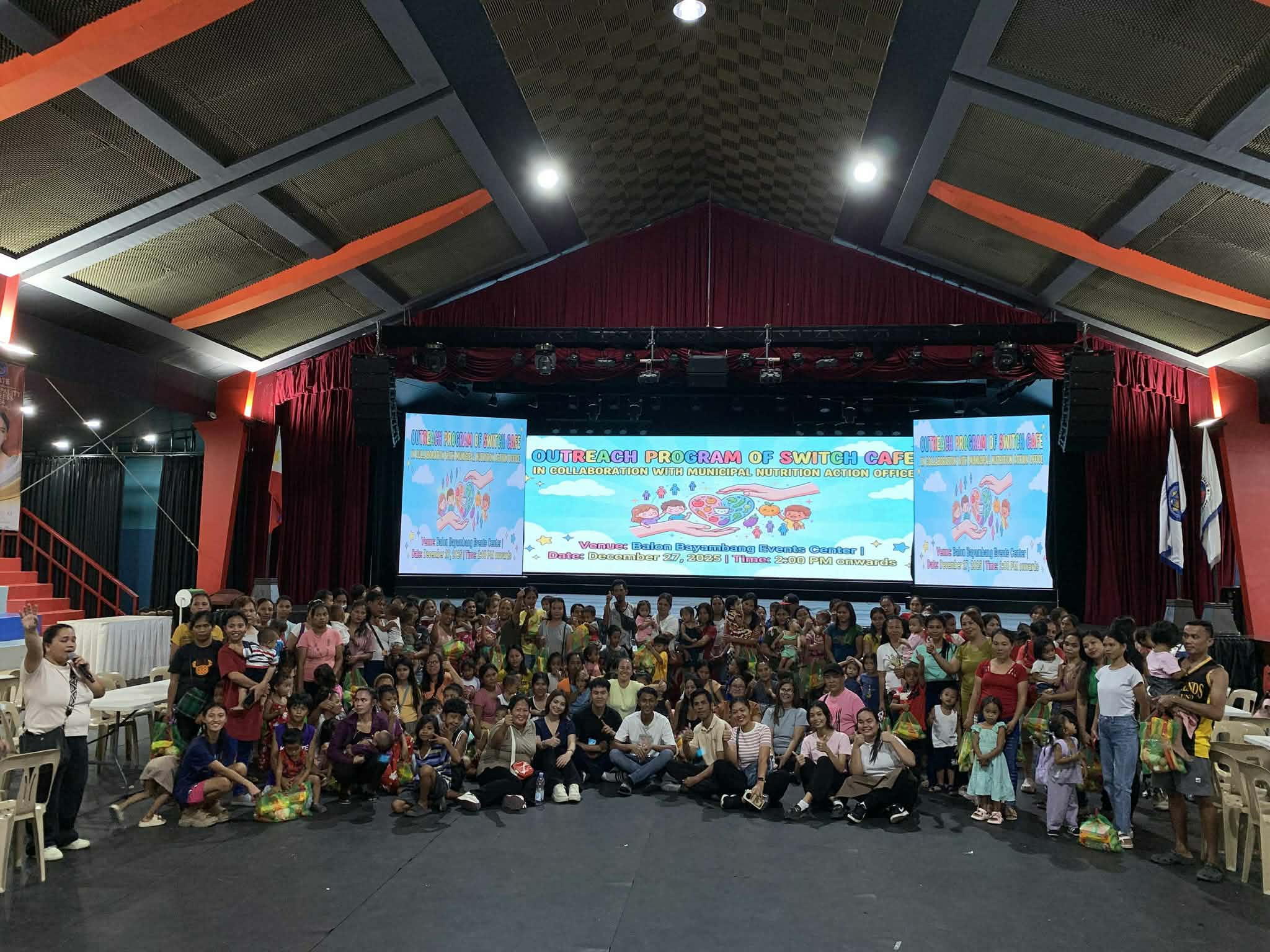 Nagsagawa muli ang Switch Cafe ng isang outreach program para sa may 100 indigent na benepisyaryo, kabilang ang kanilang mga maliliit na anak, nitong Disyembre 27, 2025 sa Balon Bayambang Events Center, katuwang ang kanilang mga sponsor at ang Municipal Nutrition Action Office (MNAO) ng LGU-Bayambang.